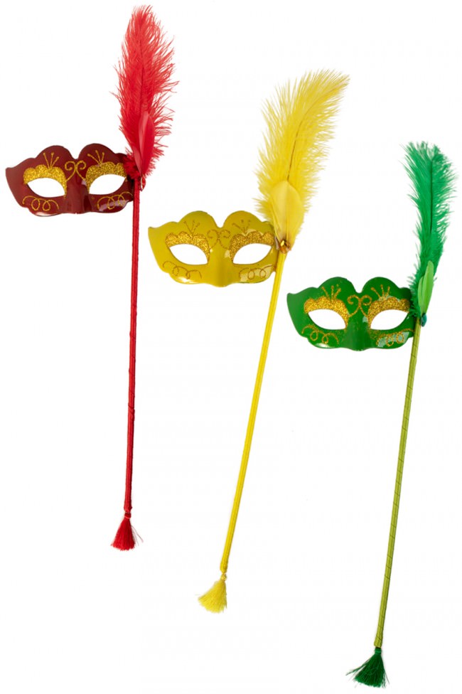 6 Carnavals Oogmaskers op stok rood geel groen Oogmasker op stevige stok in...meer