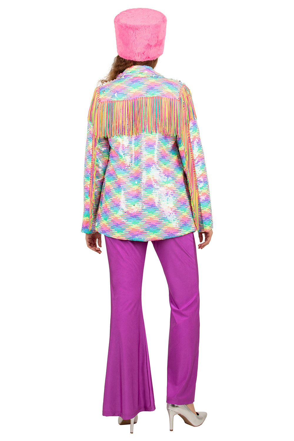 Deze Festival Jas pailletten pastel regenboog met franje is perfect voor je carnavalsoutfit!