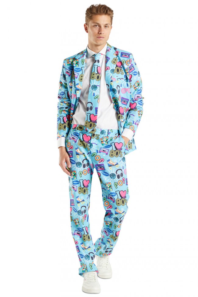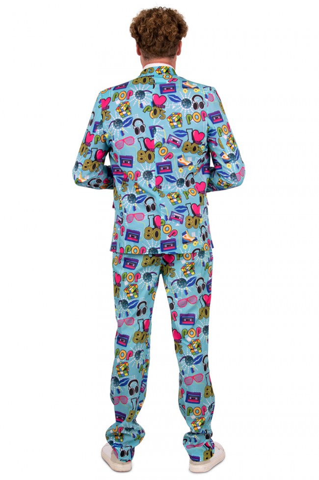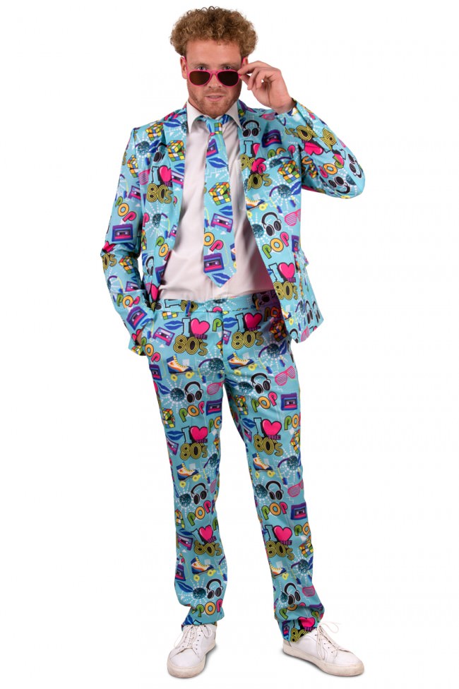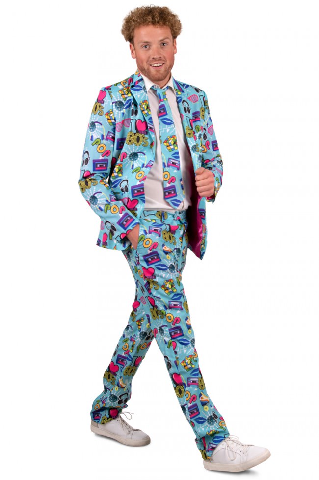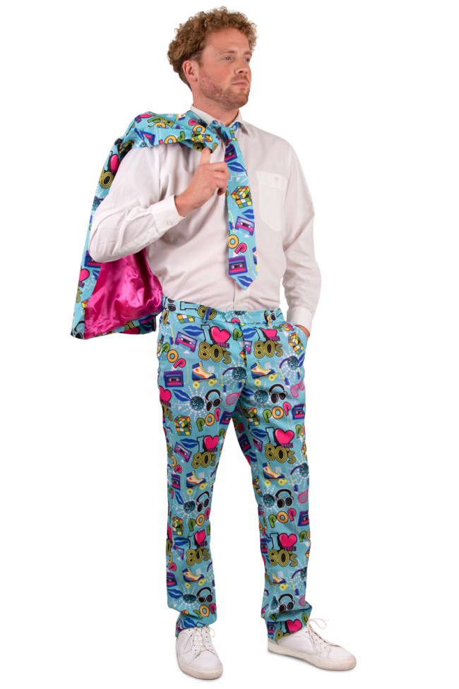 Back to the 80’s! Een leuke kostuum met diverse printjes wat typisch jaren 80 is. Dit kostuum bestaat uit de broek, het colbert en de stropdas.