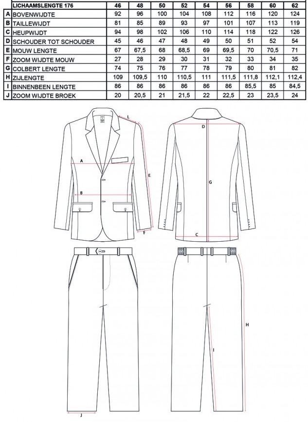 | Inbegrepen: | Stropdas, Jas, Broek |